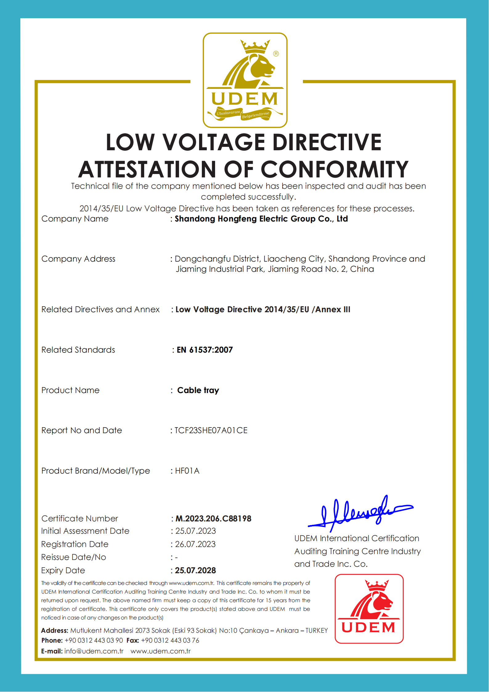 Over the past decade, from raw material procurement to finished product delivery, we have established 12 rigorous quality inspection processes. We select the highest - quality base materials to ensure the load - bearing capacity and corrosion resistance of cable trays. Each batch of products undergoes tests such as load testing, coating adhesion testing, and salt spray testing to ensure compliance with multiple international certification standards. We have already obtained important certifications such as ISO 9001, IEC 61537, and the CE mark, ensuring stable operation of our products in different global climatic environments and engineering scenarios.